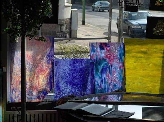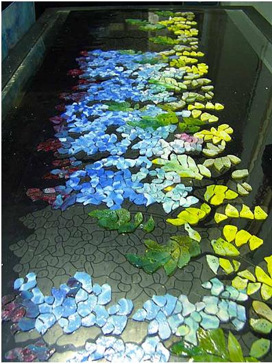 第二步,用灯箱台看切好后的玻璃碎片,颜色摆放是否和谐,透过灯光的照射,可以让人忽略掉背景示意图。