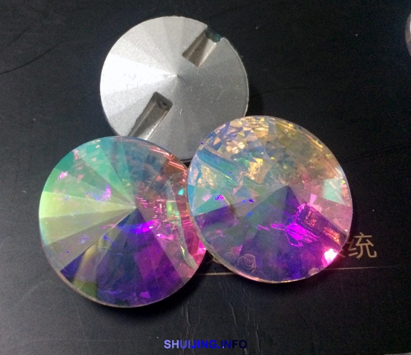 大号水晶纽扣玻璃钮扣AB七彩横孔扣时尚新潮风衣扣