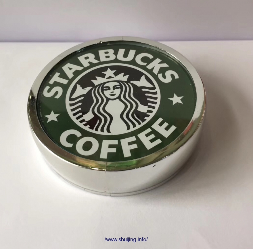 还有一种就是将图案贴纸垫在杯盖孔内,直接将尺寸刚好透明玻璃片压在贴纸上,克服了玻璃片没气泡并提高了几倍生产效率,但又出现了其他弊端不足,杯盖设计需要更加复杂,合理,紧凑;杯盖上如果有水渗透或杯盖上玻璃片脱落,那将会出现尴尬情况,破坏产品美感。